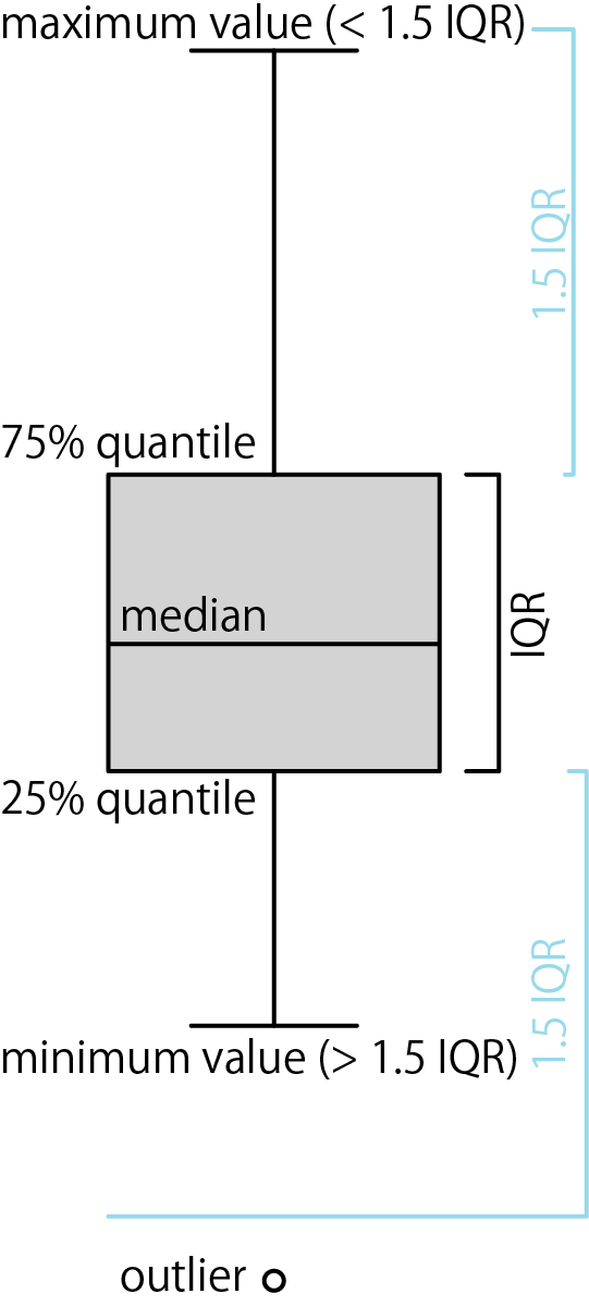 boxplot(x ~ y) | 箱ひげ図(yは因子) |