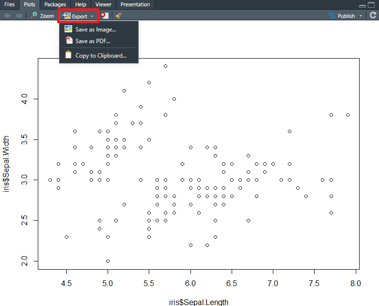 また、Rstudioでは、右下のタイルに表示されたグラフの上部にある、『Export』を選択して表示されているグラフを保存することができます。