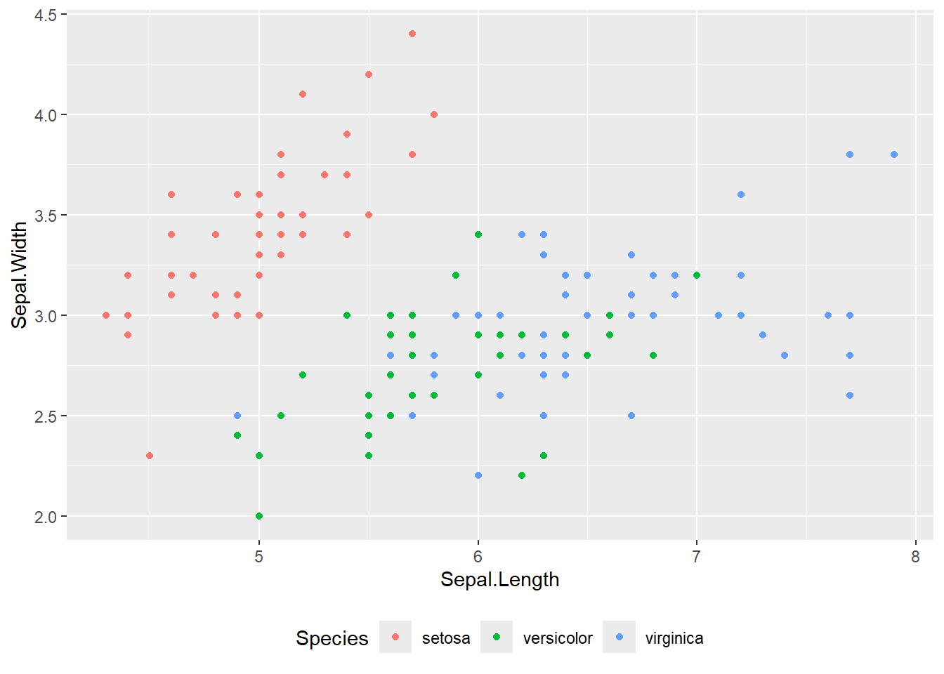 mapping: x = ~Sepal.Length, y = ~Sepal.Width