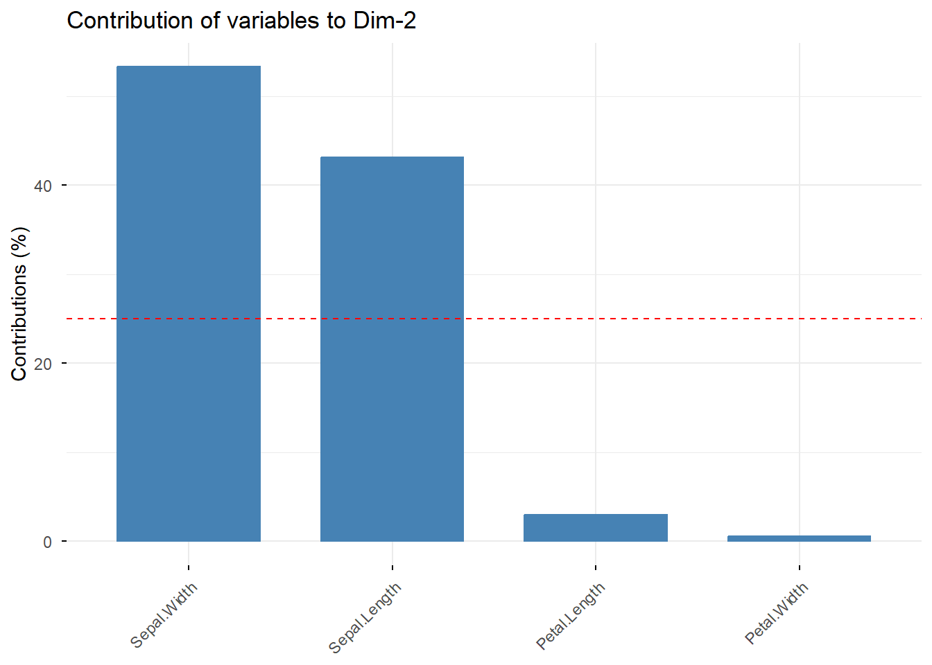 iris.pc|>summary()## Importance of components:## PC1 PC2 PC3 PC4## Standard deviation 2.0563 0.49262 0.2797 0.15439## Proportion of Variance 0.9246 0.05307 0.0171 0.00521## Cumulative Proportion 0.9246 0.97769 0.9948 1.00000