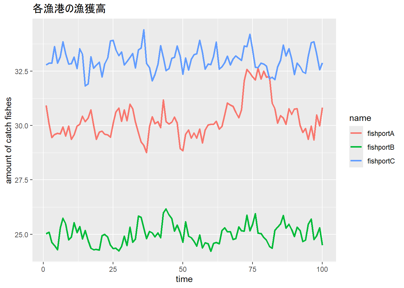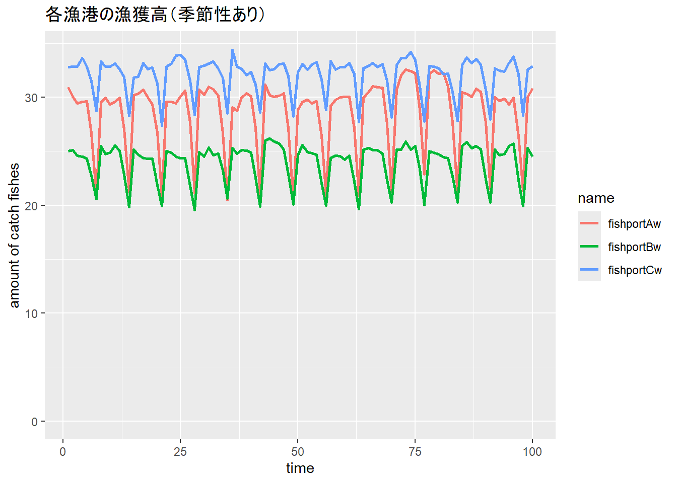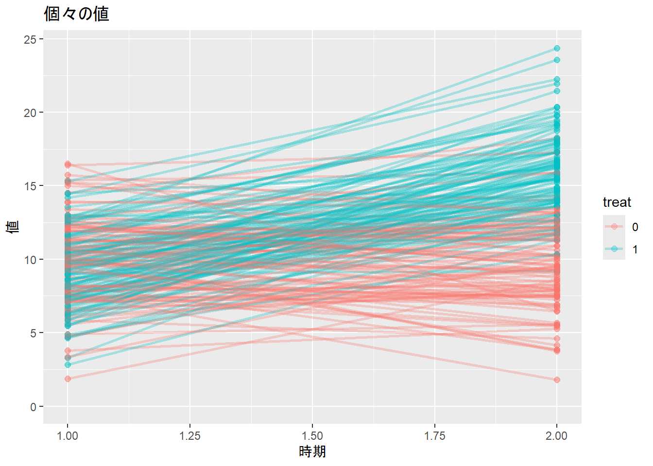labs(title = "個々の値", x = "時期", y = "値") +