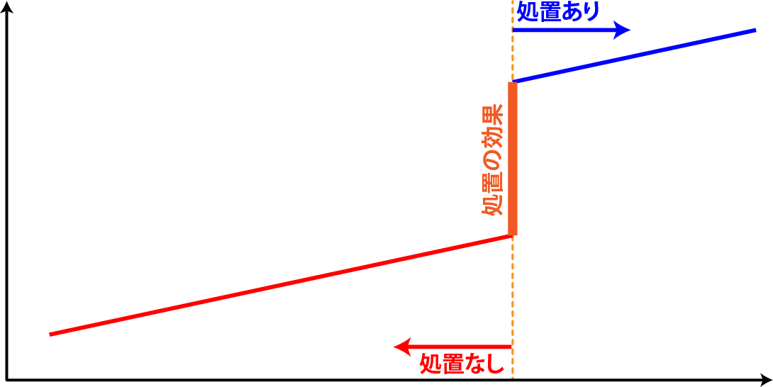 回帰不連続デザイン:不連続点で傾きが異なる場合
