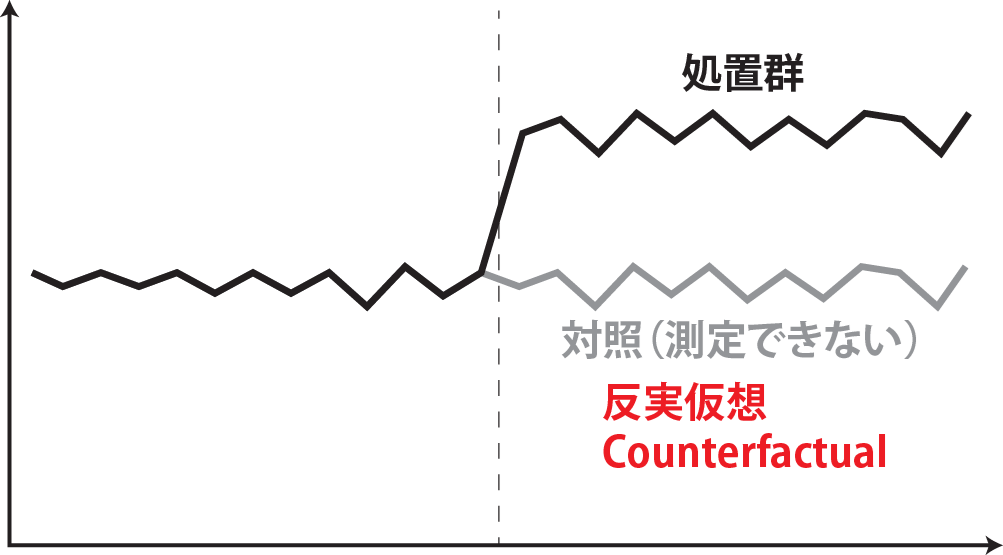 expand_limits(y = 0)この章では、以下の図の因果推論の手法のうち、差分の差分法、CausalImpact、回帰不連続デザインの3つについて紹介していきます。