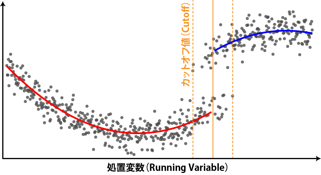 回帰不連続デザイン:カットオフ値の前後で曲率が変わる場合